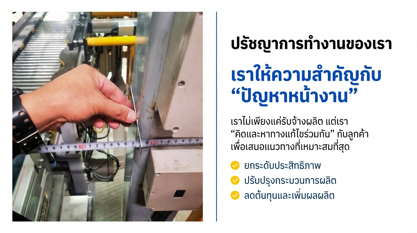 เราให้ความสำคัญกับ ‘ปัญหาหน้างาน’ ของลูกค้า คิดและหาทางแก้ไขร่วมกัน เพื่อยกระดับประสิทธิภาพและปรับปรุงกระบวนการผลิต